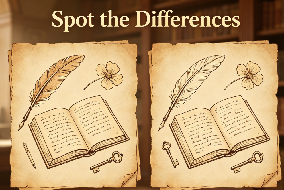 The Archivist’s Journal invites users to examine digital reproductions of vintage sketches and handwritten notes. The task is to spot five differences in line work, ink density, or parchment texture between the two presented items.